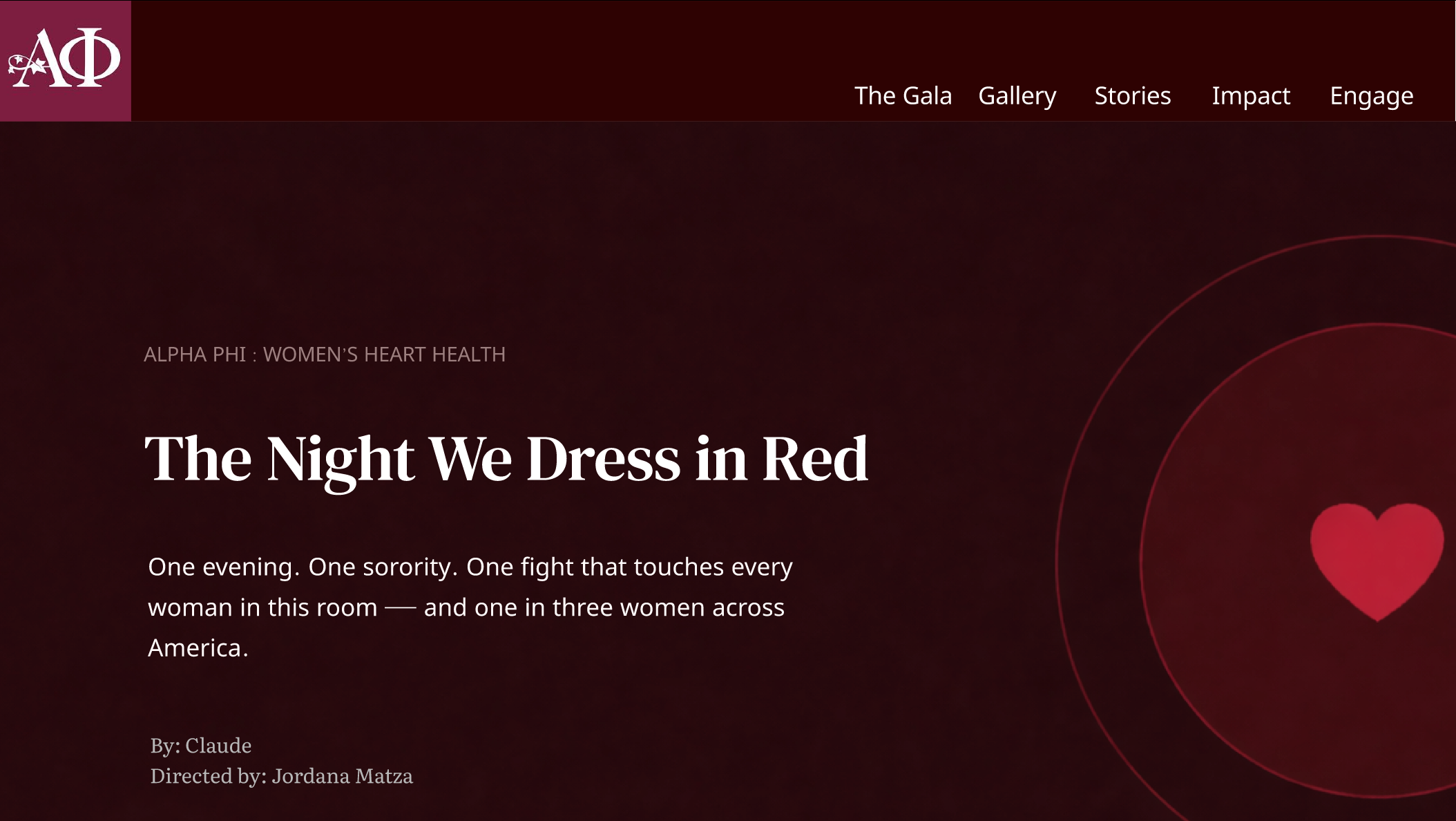 In Spring 2026, I designed a digital storytelling experience for Alpha Phi’s Red Dress Gala, a philanthropy event supporting women’s heart health. My goal was to show the full experience of the event, from getting ready with friends to understanding the impact of the cause. I made the design feel more personal and easy to follow by breaking it into sections and using strong visuals. I also added interactive elements, like scroll-based storytelling and clickable content, to keep users engaged and make the experience feel more dynamic. This project shows my interest in combining storytelling and design to create work that feels engaging, meaningful, and easy to connect with.